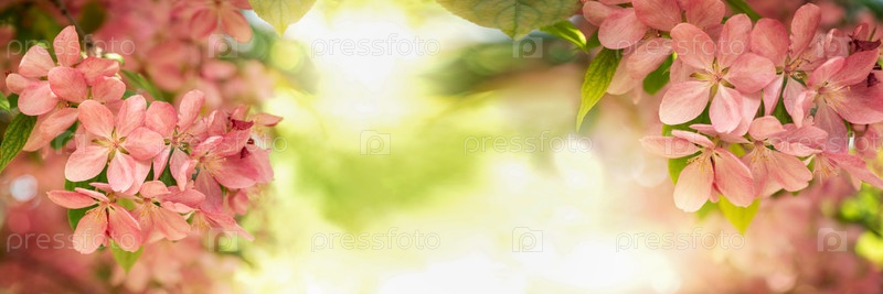 Розовые цветы цветущей яблони весенний баннер с местом для текста