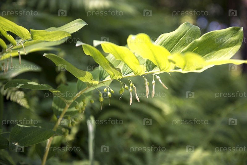 Цветок Polygonátum с зелеными листьями растет в саду