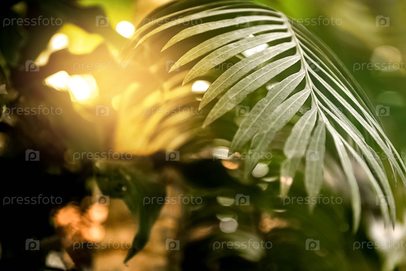 Солнце светит сквозь листья пальмы
