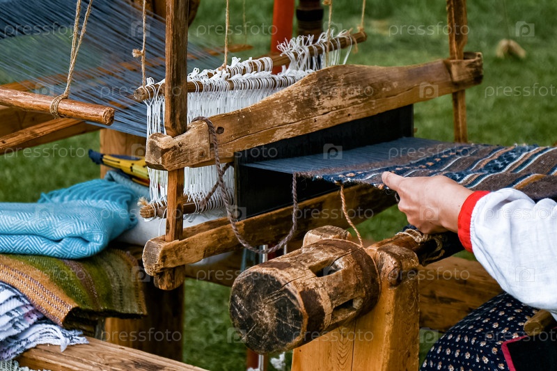 Процесс создания ткани на старом ткацком станке