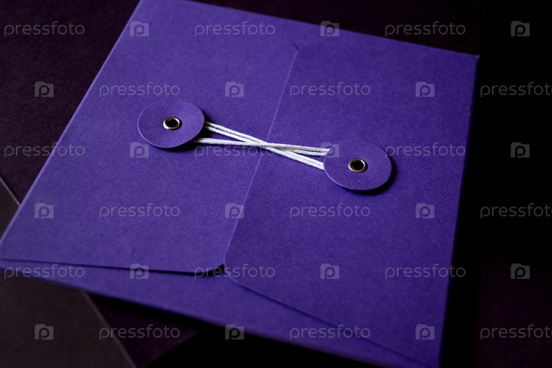 Конверт, перевязанный белой нитью, намотанной между двумя застежками крупным планом