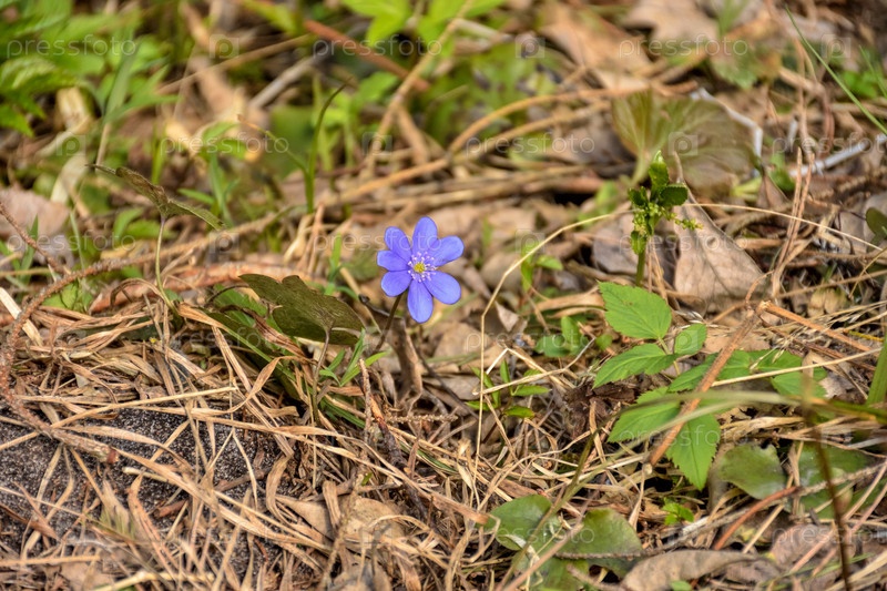 Фиолетовый цветок крокуса крупным планом в сухой траве