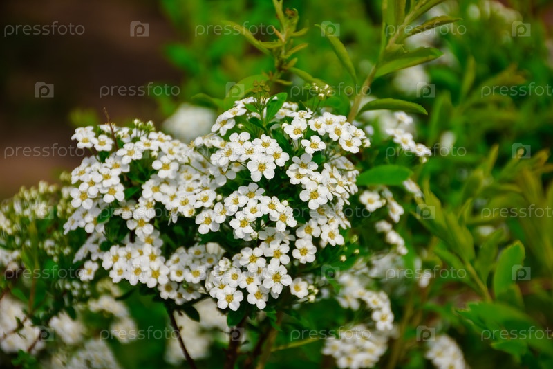 Белые цветы спиреи крупным планом