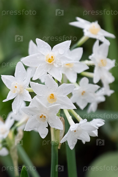 Букет хрупких белых цветов нарцисса в теплице