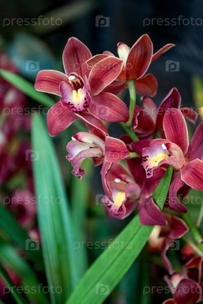 Красные цветки орхидеи фаленопсиса в полном расцвете в теплице