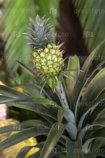 Маленький зеленый ананас на длинном стебле
