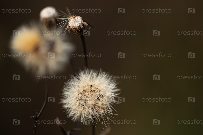 Соцветие сушеных пушистых семян цветка чертополоха на размытом фоне