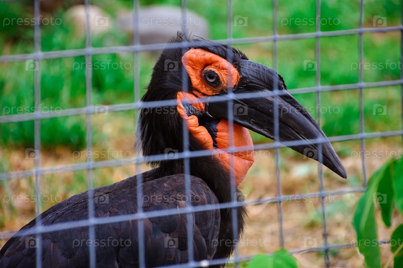 Кафрская рогатая ворона, рогатый ворон в клетке