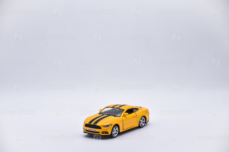 Желтый игрушечный автомобиль на белом фоне