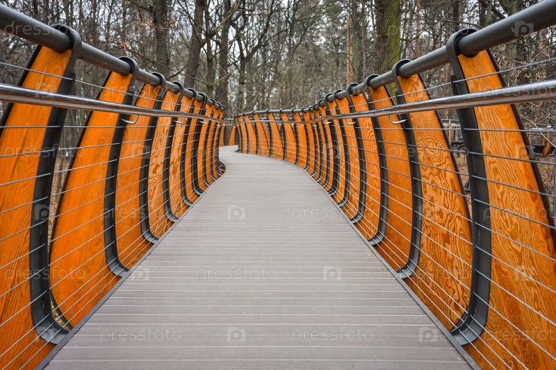 Воздушный экотропический парк на ВДНХ, деревянная дорожка в осеннем лесу