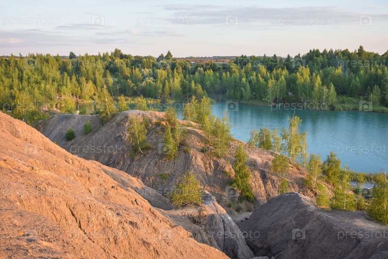 Голубое озеро в заброшенном карьере, романцевские горы, озеро в заброшенной шахте, голубое