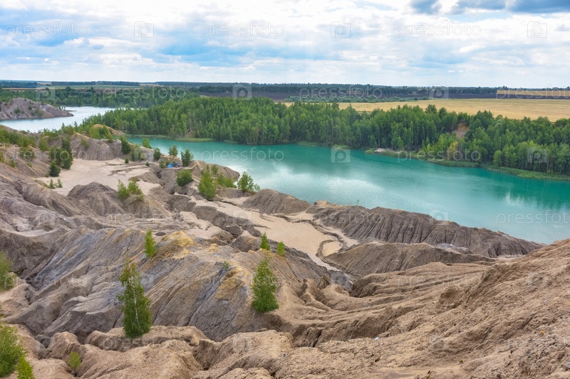 Голубое озеро в заброшенном карьере, романцевские горы, озеро в заброшенной шахте, голубое