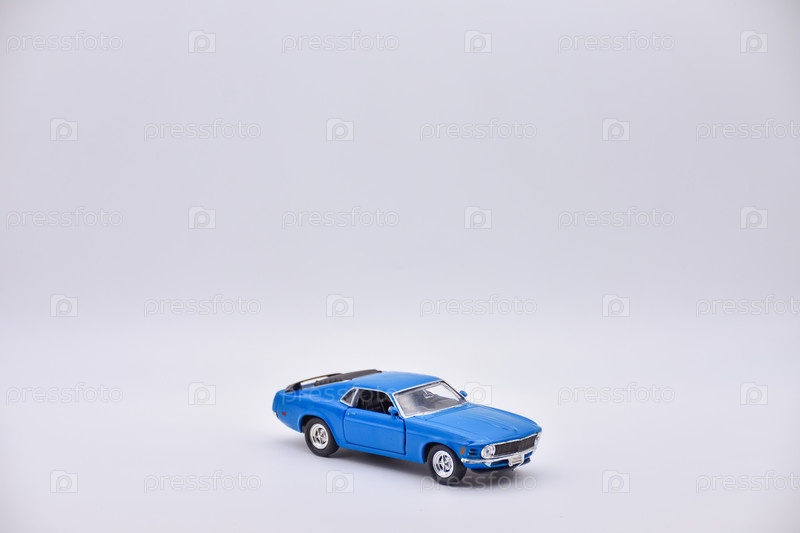 Синий игрушечный автомобиль на белом фоне