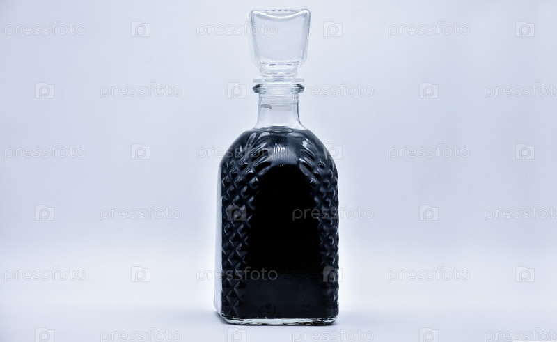 Графин с черной жидкостью на белом фоне