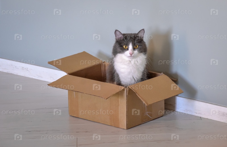 Кот сидит в коробке