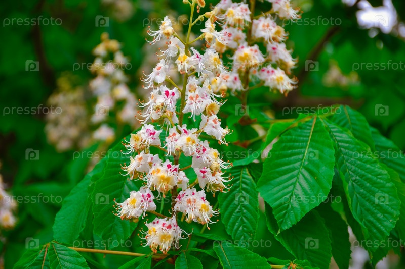 Цветы каштана крупным планом, цветущий каштан