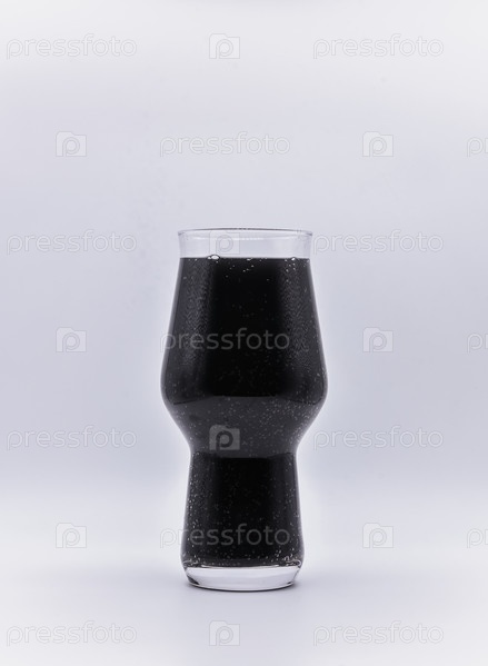 Стакан с черной жидкостью на белом фоне