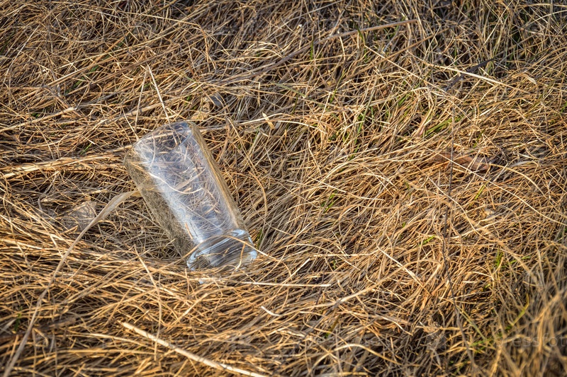 Стеклянная чашка лежит в траве