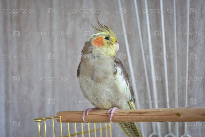 Серый попугай кореллы сидит на окуне