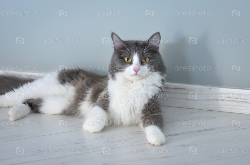 Портрет лежащего на полу кота