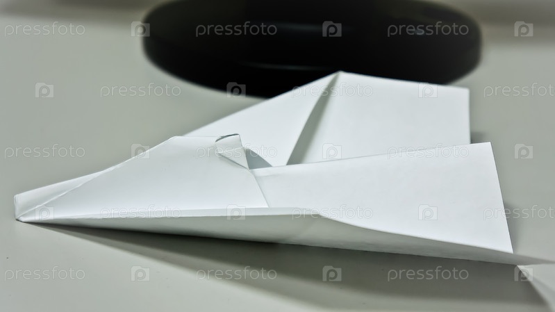 Бумажный самолетик на столе