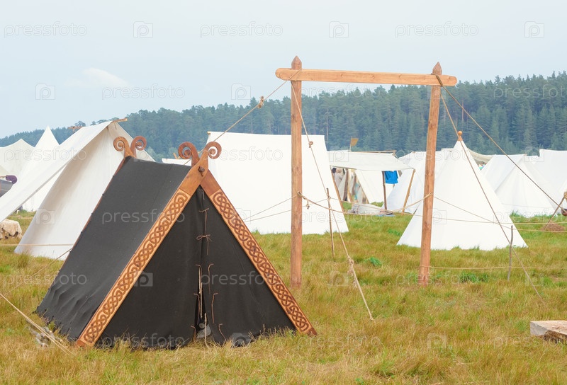 Черная палатка на природе палаточный городок