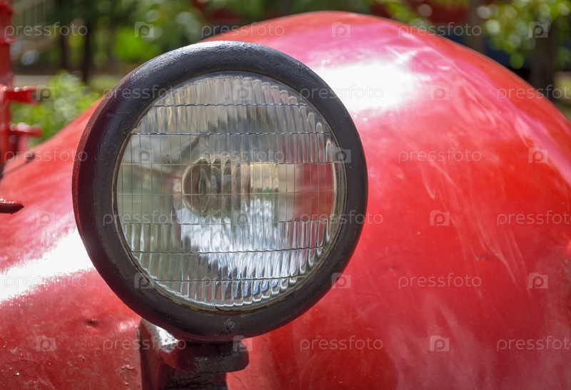 Круглая фара автомобиля крупным планом