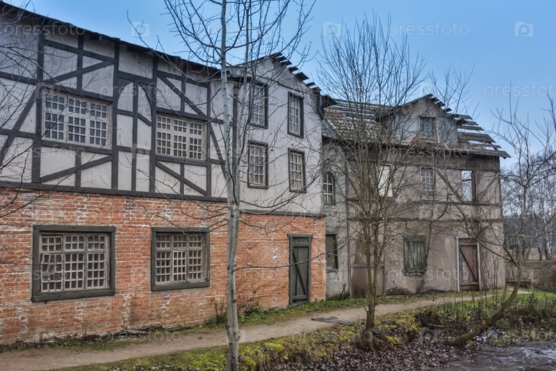 Деревянный средневековый европейский дом, европейское городское здание 18 века, старый деревянный дом в европейском стиле
