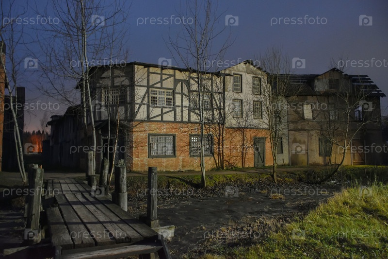 Деревянный средневековый европейский дом, здание европейского города 18 века, старый деревянный дом в европейском стиле