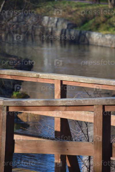 Деревянные перила моста крупным планом