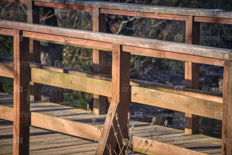 Деревянные перила моста крупным планом