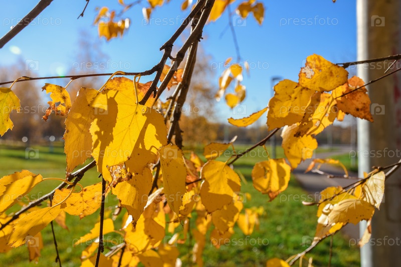 Пожелтевшая листва крупным планом, пожелтевшая листва березы