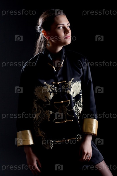 Женщина в шелковой рубашке в студии