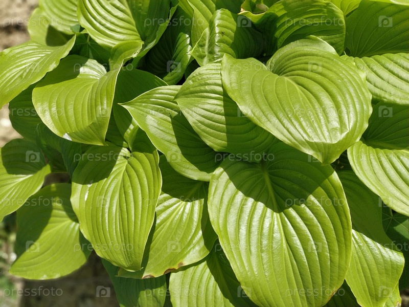 Крупный план текстурированных зеленых листьев хосты