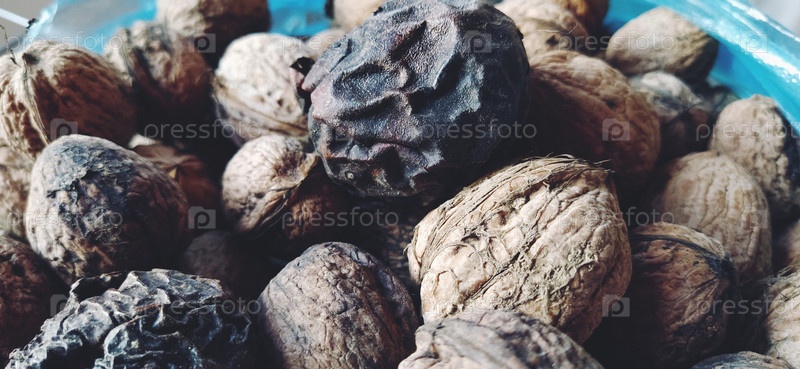 Грецкие орехи крупным планом. Сбор орехов. Плоды грецкого ореха, округлые крупные одиночные односемянные костянки. Здоровая диета, включающая глицериды линолевой, олеиновой, стеариновой, пальмитиновой и линоленовой кислот