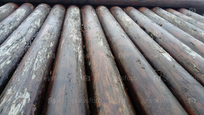 Строительное бревно для использования в строительстве без продольной распиловки. Ассортимент круглого леса. Фрагмент конструкции из оцилиндрованного бревна. Влияние влаги на древесину
