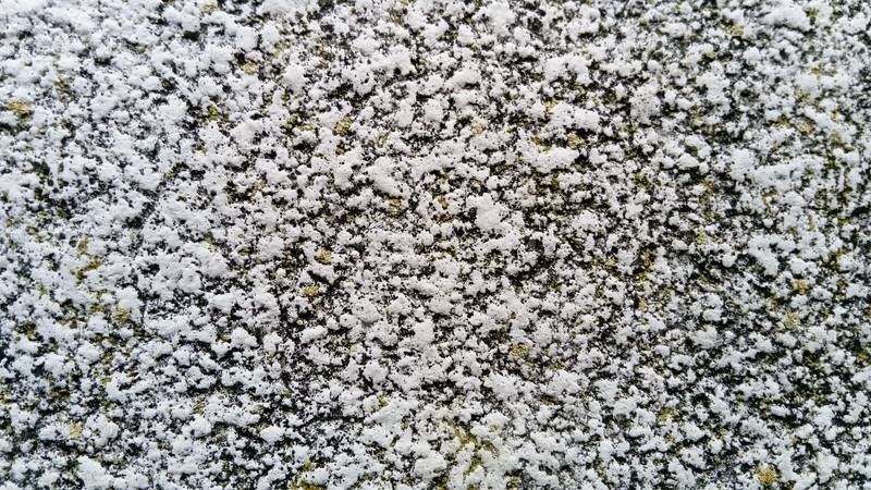 Бетонно-штукатурное покрытие. Фасад неровный, шероховатый на ощупь. Старая поверхность, на которой виден мох. Крупный план. Серые, белые, красные, темные, болотные вкрапления