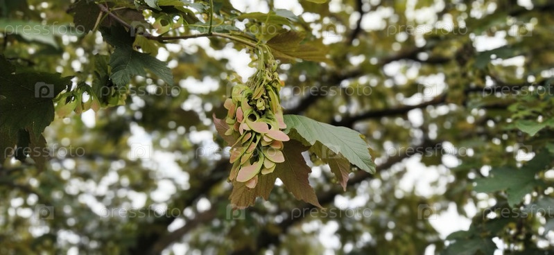 Семена клёна на ветке дерева. Накопление семян в соцветиях. Проблема аллергии на цветущие растения. Клен, лат. Acer род древесных растений семейства сапиндовых