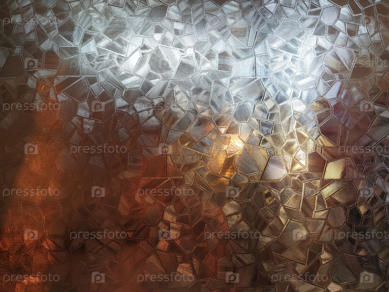 Рифленое стекло с подсветкой. Красивое преломление света в красном, коричневом, желтом, оранжевом и черном цветах. Абстрактный фон для самоклеящихся пленок. Рифленая стеклянная поверхность