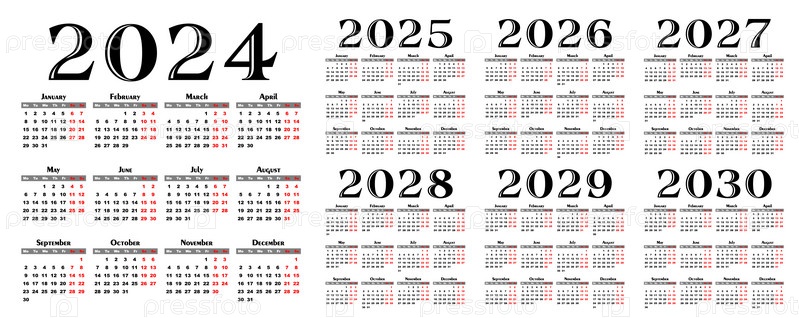 Набор шаблонов календаря на 2024-2030 годы