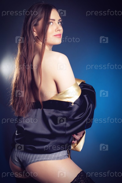 Женщина в шелковой рубашке в студии