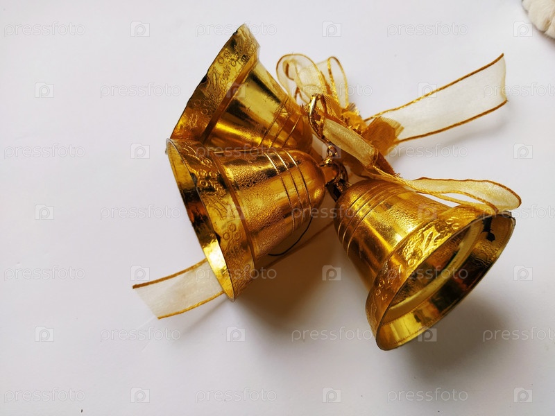 Рождественские колокола, изолированные на белом фоне. Золотое украшение на Новый год или Рождество