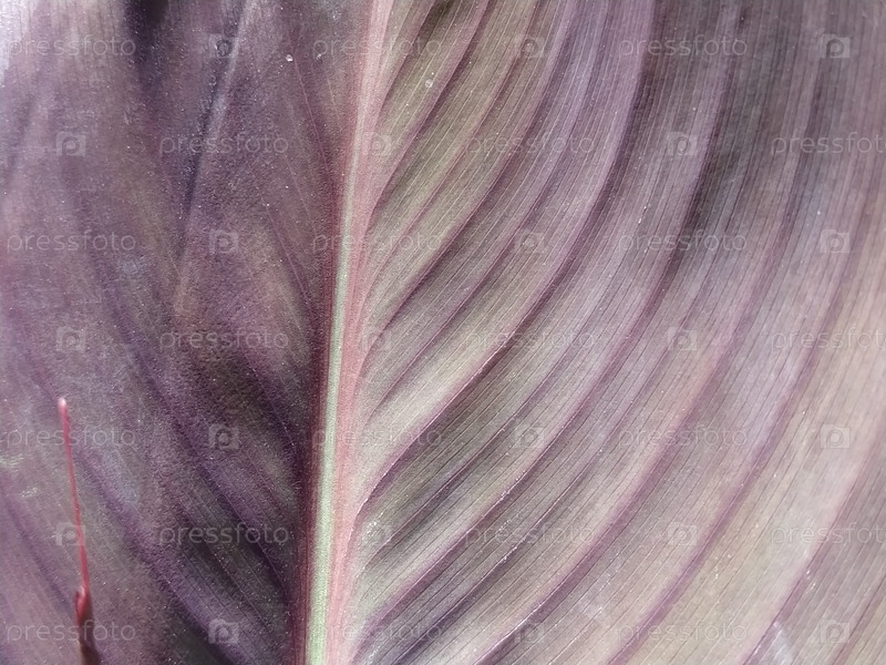 Фиолетовый сиреневый лист крупным планом. Тропическое растение как естественный фон. Полосы и царапины
