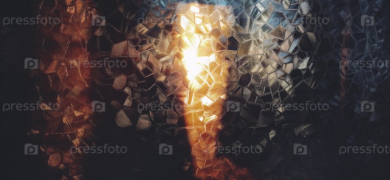 Рифленое стекло с подсветкой. Красивое преломление света в красном, коричневом, желтом, оранжевом и черном цветах. Абстрактный фон для самоклеящихся пленок. Рифленая стеклянная поверхность
