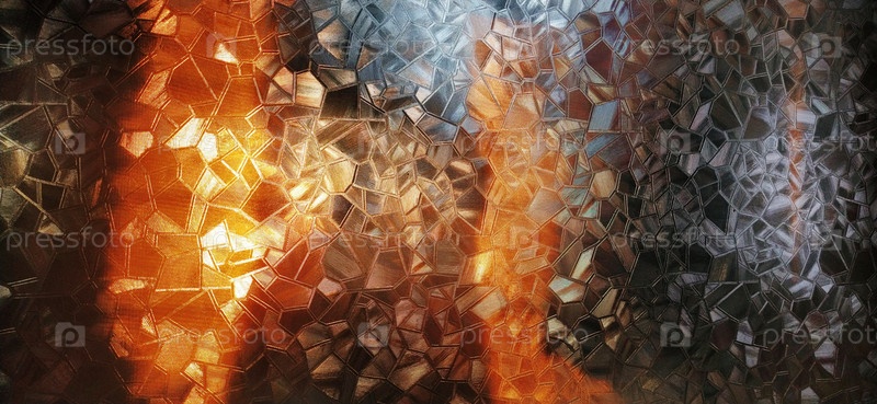 Рифленое стекло с подсветкой. Красивое преломление света в красном, коричневом, желтом, оранжевом и черном цветах. Абстрактный фон для самоклеящихся пленок. Ребристая стеклянная поверхность