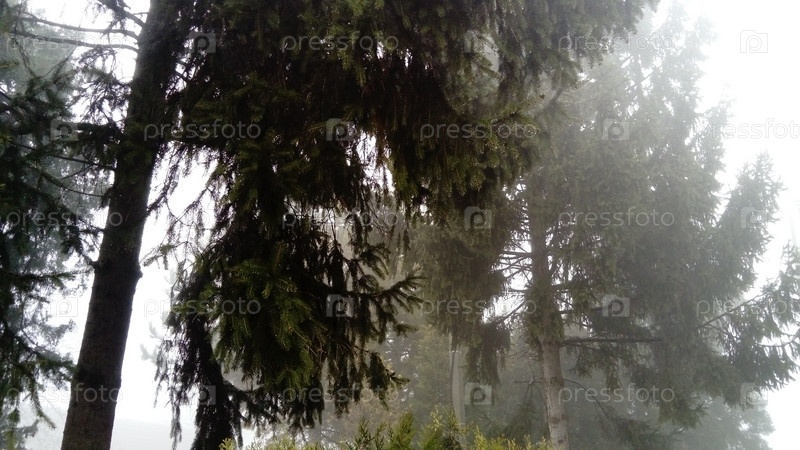 рождественские деревья в тумане
