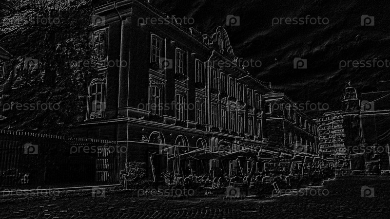 Исторический центр города Тимишоара в Румынии. Мощеная мостовая в старом городе. Черно-белый монохромный