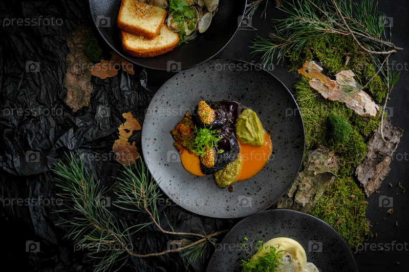 Стейк из черной говядины с кремом из запеченной тыквы