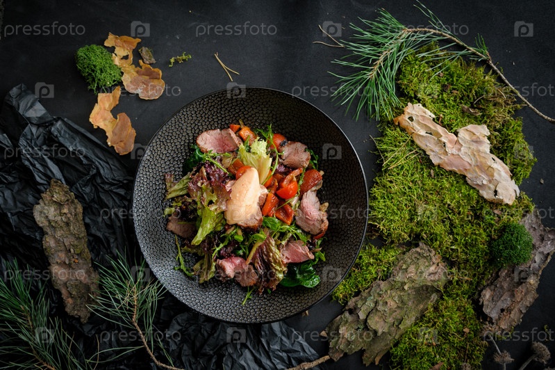 Салат с мраморной говядиной и мороженым