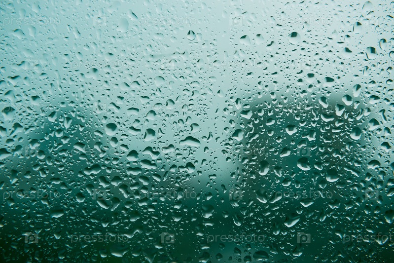 Капли воды на стекле, зеленый фон